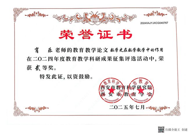 躬耕不辍结硕果,砥砺前行谱新篇。在2025年度市级教育科学科研成果征集评选活动中,西安市航天中学教师团队喜获丰收,十位教师载誉而归,彰显了扎实的教研功底与卓越的创新实力。康晓波、张思萌、康露三位老师凭借扎实的研究成果斩获市级一等奖,刘莉、康晓波、南溪、张思萌、肖乐、曹竞文老师荣获市级二等奖,刘莉、张云慧、尚婷、康露、宋依娜老师喜获市级三等奖。