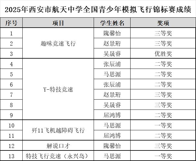 在各类竞赛与实践活动中,西安市航天中学师生携手并进,奋勇争先,同样频传捷报,尽显风采,特此祝贺所有获奖师生!