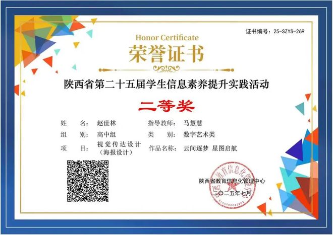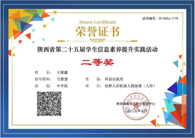 陕西省第25届学生信息素养提升实践活动中,马慧慧老师指导王敬鑫、赵世林两位学生喜得二等奖