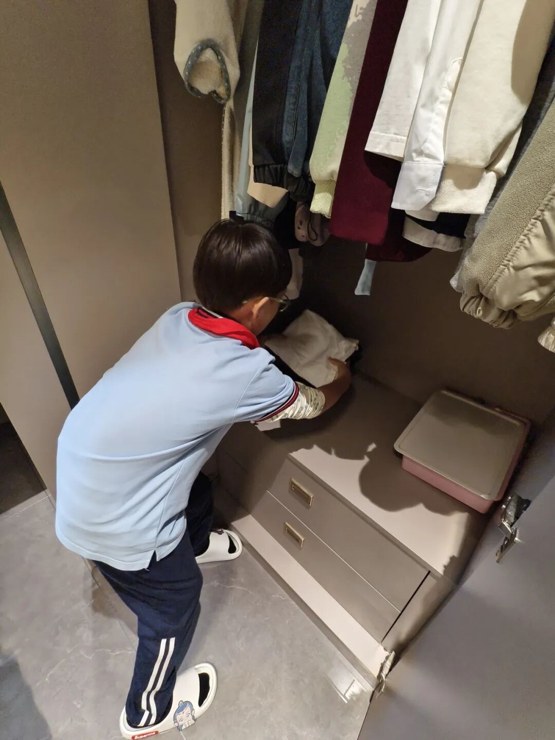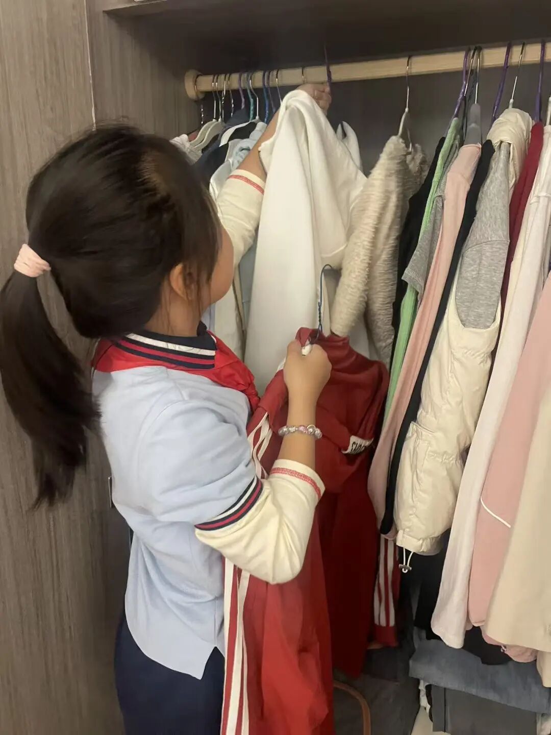 王临溪同学帮妈妈整理衣物