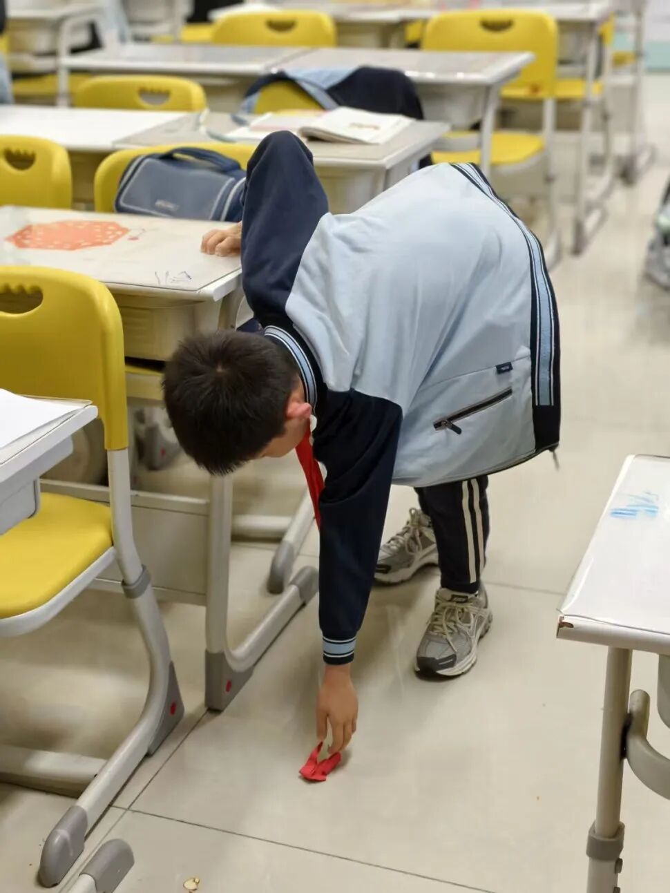 捡起教室地面的纸屑