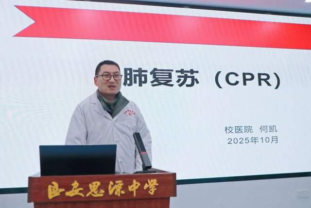 生命至上,应急先行。为进一步提升全体教职工的应急救护意识与实操能力,掌握关键时刻能救命的 “黄金技能”,10月22日下午,西安思源中学特别邀请西安思源学院校医院何凯医生,为全校教职工开展了一场生动实用的心肺复苏(CPR)专题培训。