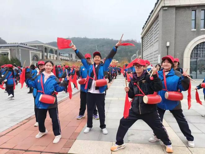 红色激情在安塞腰鼓教学中彻底迸发。基地内激昂的鼓点响起,全体同学在教练指导下挥臂、踏步、跳跃,红绸翻飞间吼声震天,将三十中学子特有的蓬勃朝气与青春活力展现得淋漓尽致,也让研学氛围达到高潮。