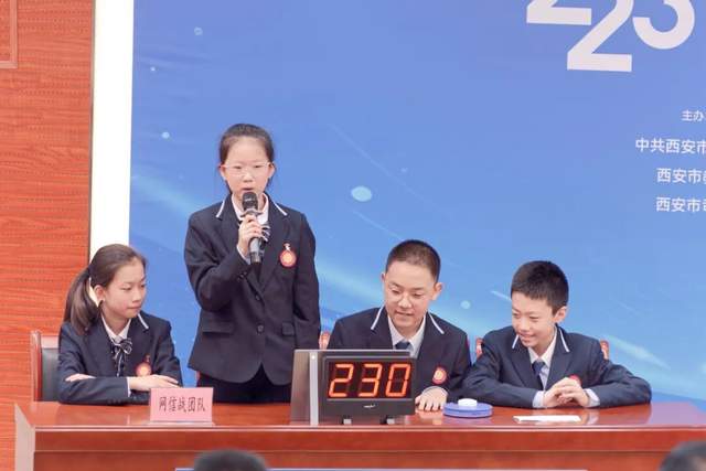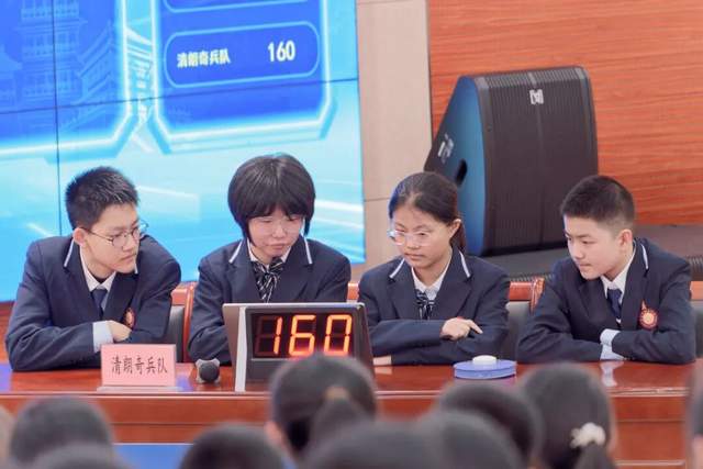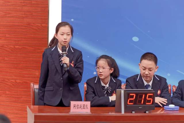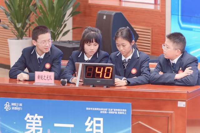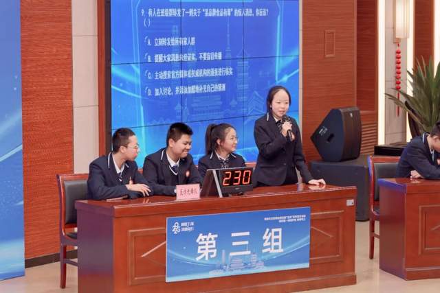 于碰撞中激发智慧火花。到了本次活动最为紧张激动的环节,校园网络普法知识竞答!来自初二年级各个班级组成的4支参赛战队齐聚,开展冲关答题挑战赛。