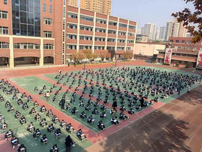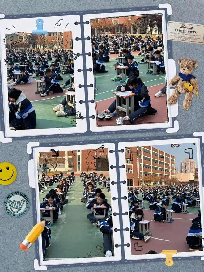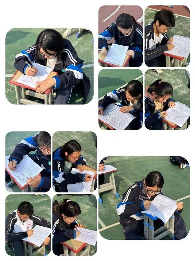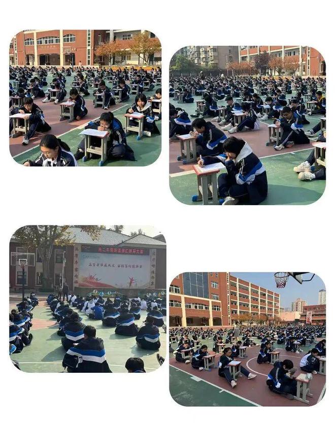 同学们以班级为单位,整齐就坐,构成了一道独特的风景线。在蔚蓝的天空下,他们神情专注,或眉头紧锁,或奋笔疾书。空气中只听得见笔尖划过纸张的“沙沙”声,这声音汇聚成一首激昂的青春交响曲。每一位学子都沉浸在词汇的世界里,与一个个单词进行着智慧的博弈,展现出了庆高学子严谨认真的学习态度和积极向上的精神风貌。