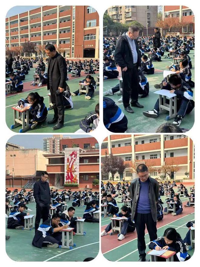 赛场边,最引人注目的莫过于各位班主任的身影。他们或静静地站在本班队伍后方,用目光给予学生无声的鼓励;或轻声提醒学生注意书写规范和时间分配。他们是学生最坚实的后盾,是赛场上一道温暖而有力的风景线。这份陪伴,让同学们在紧张的比赛中感受到了来自师长的关爱与支持。