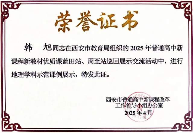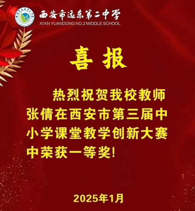十月,高云老师凭借出色的教学能力,被授予2025年“西安市基础教育教学能手”称号,充分体现西安市远东第二中学教师队伍建设的扎实成效与持续发展力。