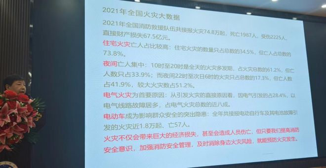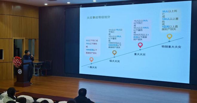 本次讲座紧扣“预防为主·生命至上”的主题。主讲人凭借丰富的理论知识和实践经验,结合近年来国内外典型的校园及公共场所火灾案例,图文并茂地剖析了火灾发生的原因、教训以及带来的巨大危害。重点围绕以下几个方面进行了深入浅出的讲解。
