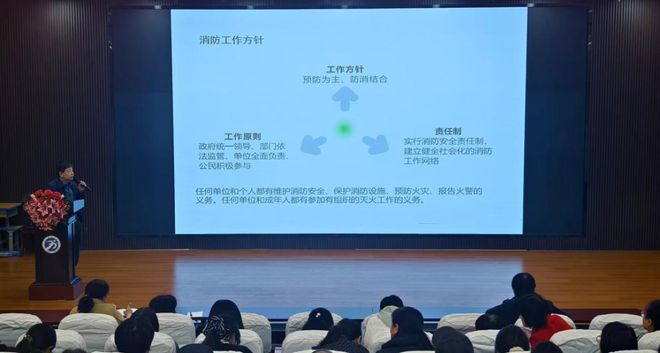 在第32个全国消防日来临之际,为全面提升校园消防安全管理水平,增强全体教职员工的消防安全意识和自防自救能力,2025年11月6日下午,西安市五环中学特邀国家一级注册消防工程师、西安市住建局消防专家组成员、西安市消防局专职消防宣讲员种永胜在励耘报告厅成功举办了一场内容丰富的消防知识专题讲座。