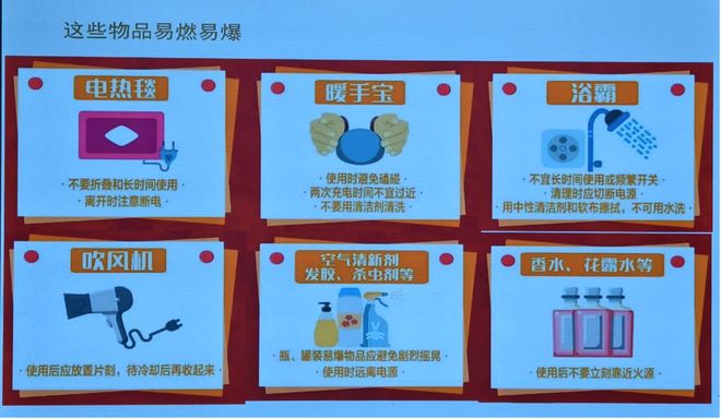 报告人详细讲解了教学楼、实验室、学生公寓、食堂操作间、配电室、图书馆等重点区域可能存在的火灾隐患,如违规用电、电器线路老化、易燃物品堆放、消防通道堵塞等,提高了大家对身边火灾风险的辨识能力。