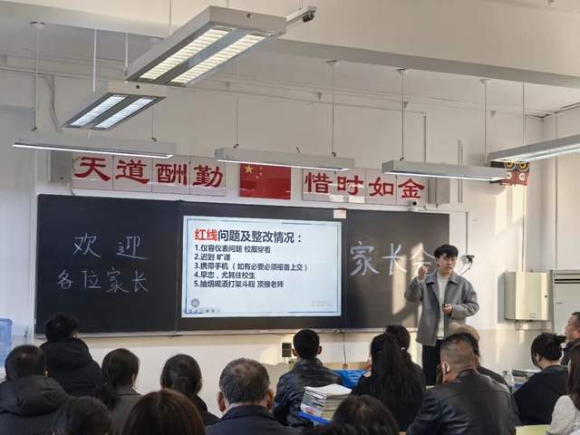 会上,贾智斌从班级现状、近期工作计划、学校管理政策及高考学考准备四个方面系统介绍相关情况。班级现状涉及学生学业进度和行为习惯;基于学生学情近期安排工作计划;学校管理重申安全规范及纪律要求;高考学考则聚焦备考规划。青年班主任全程旁听,作为实战培训组成部分。