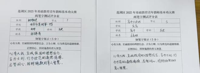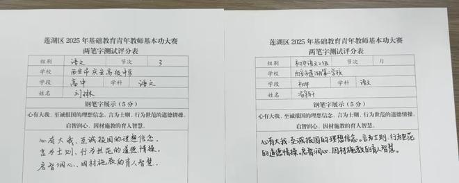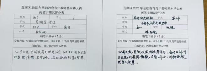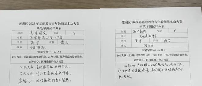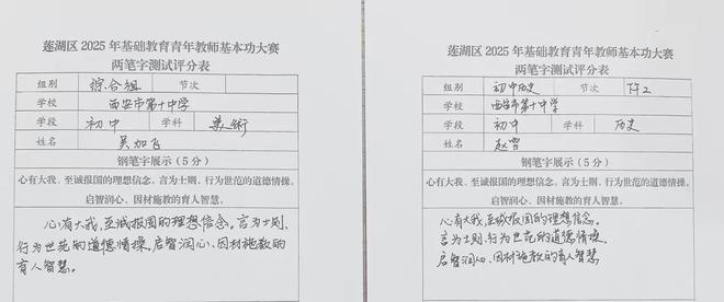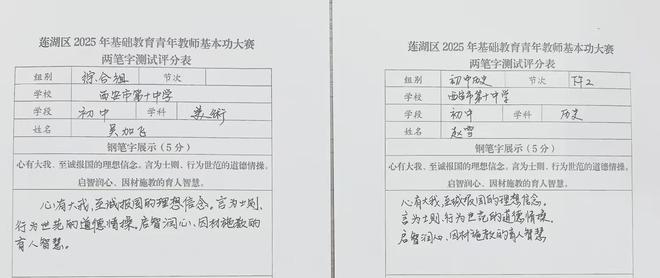 第二场比赛是“两笔字”展示,这场展示以笔为媒,书写师者初心;以字为镜,映照师德光辉。两笔字展示的不仅是笔墨功底的锤炼,更是将师德师风内化于心、外化于行的修行,让每一笔横平竖直都成为立德树人的生动注脚。