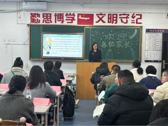 集体会议结束后,家长们有序前往各班教室,开启针对性极强的分班交流环节。推开教室门,整洁的桌面、精心布置的文化墙、错落陈列的学生作业与成长手册,每一处细节都浸润着老师们的匠心与温情,让家长们深切感受到扑面而来的育人温度。