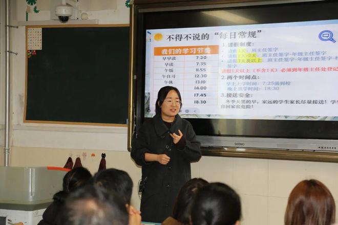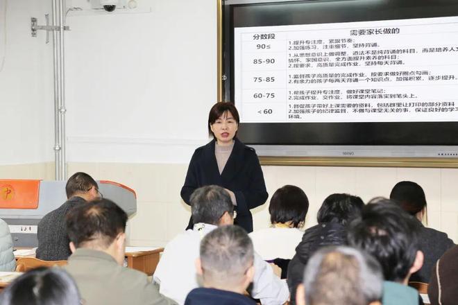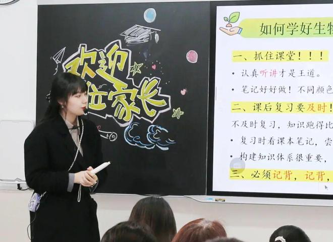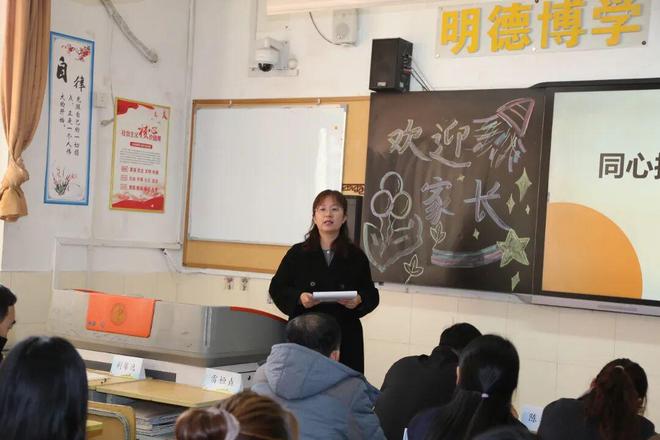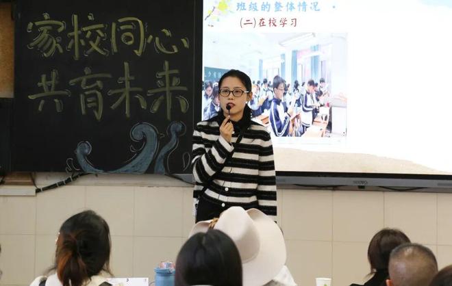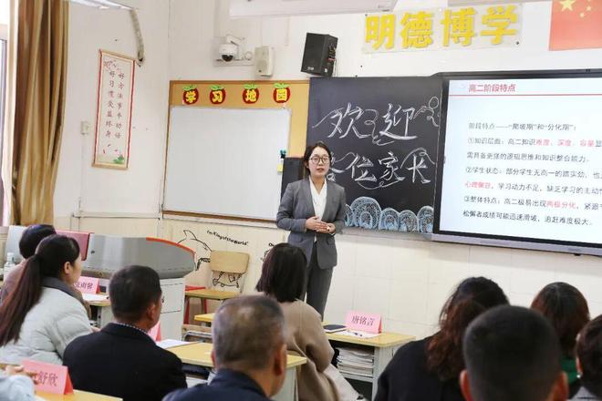 各班教室被老师们布置得温馨而整洁,黑板上绘制的欢迎辞传递着浓浓的暖意。班主任们精心准备了详实的图文资料,多维度介绍了班级风貌和同学们半个学期以来的成长足迹,并围绕“如何构建良好亲子关系”“如何激发学生内驱力”等话题,给出了具体而中肯的家庭教育建议。