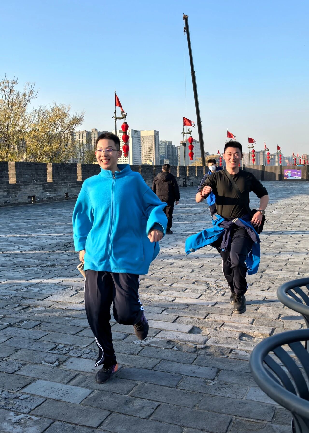 老师们也参与到活动中来,为同学们鼓舞士气,勉励学生以坚韧不拔的意志走好脚下的每一步,迎接人生的挑战。同学们精神抖擞,意气风发。他们暂时告别了紧张的课业,在宽阔的城墙上并肩前行。有的三五成群,互相鼓励;有的与老师并肩而行,畅谈理想与未来。古老厚重的城墙与现代学子蓬勃的朝气交相辉映,形成了一道独特的风景线。欢声笑语回荡在垛口之间,有效地缓解了备考的紧张与压力。