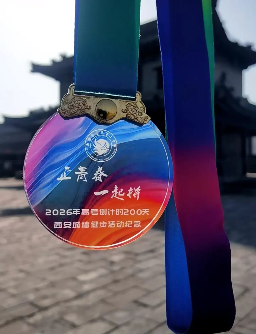 高考前200天登城墙健步走是远东二中的一项优良传统。学校精心组织,不仅为学生们准备了小面包等补给品,更在活动的终点为每一位坚持走完全程的学子颁发了一枚精美的纪念奖牌。这枚沉甸甸的奖牌,不仅是对他们完成此次徒步的肯定,更是对即将到来的高考的一份美好祝愿与激励。