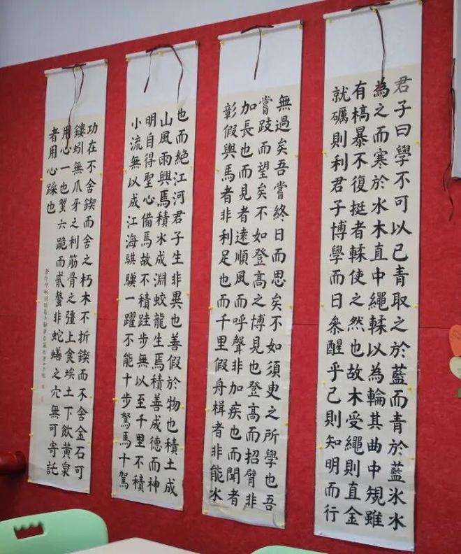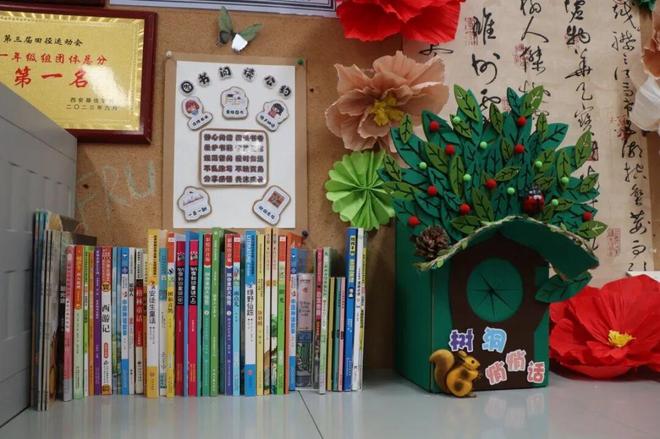 还有藤信书香角:有的班做成流动图书角,孩子们带着书来,附上亲笔推荐语:“这本书的冒险超精彩!”书目随兴趣更新,书香在交换里越来越浓;有的班加了家长寄语区,一句“看见你主动帮同学,妈妈很骄傲”,让家校的爱一起上墙。