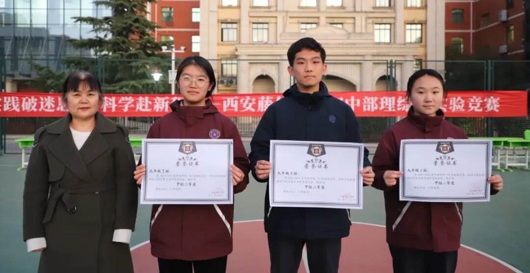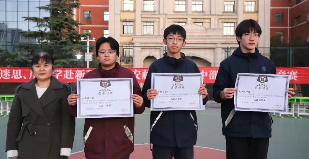 经过激烈的竞赛比拼,甲组一等奖被九年级(3)班收入囊中,乙组一等奖花落九年级(2)班,九年级(1)(5)(7)班获甲组二等奖,(4)(6)(8)班获乙组二等奖。同学们不仅收获了动手动脑的能力,更多的是协作的趣味与快乐。为每一位敢于动手、勇于探索的科学少年点赞!你们用青春的热血与执着,诠释着对科学的热爱;你们在实验中收获成长,在协作中凝聚力量。这样的你们,正是未来最耀眼的光!