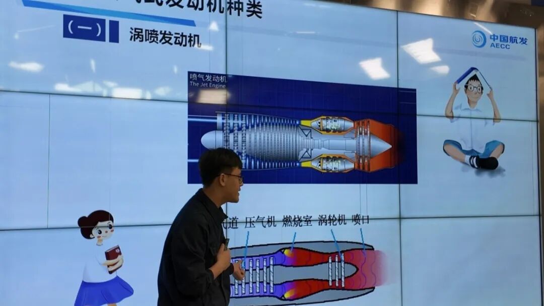 把课堂搬到产业一线。战鹰啸傲长空,神盾驰骋海疆,鲲鹏震撼天宇,走进航发动力科技展厅,一幅幅壮丽的画面在铺展……昔日简陋的实验室与今日全自动生产线交相辉映,早期仿制发动机与如今自主研发多机型一起入目,同学们的目光被闪光的复杂机械牢牢吸引。“涡轮叶片要在千度高温下承受巨大离心力,每一片都堪称‘工业艺术品’。”工程师的讲解,伴着同学们响起的掌声,展厅温暖如春。