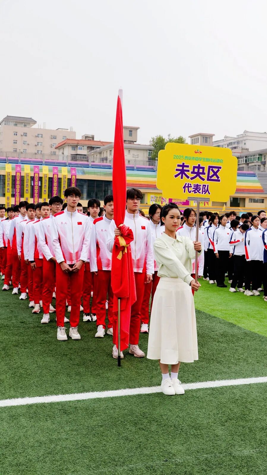 本届运动会由市教育局、市体育局联合主办,以“跃动青春 赛出风采”为主题,吸引全市1084名运动员同台竞技,赛事竞争激烈。学校作为未央区76人代表团的重要组成部分,派出丁诗倡老师及多名学子参赛,参赛项目涵盖中长跑、三级跳、标枪、接力等多个类别。