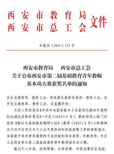 近日,西安市第二届基础教育青年教师基本功大赛圆满落幕。本次大赛高手云集,竞争激烈,吸引了全市700余名优秀教师同台竞技,既是教学专业能力的对决,更是青年教师专业成长的重要契机。