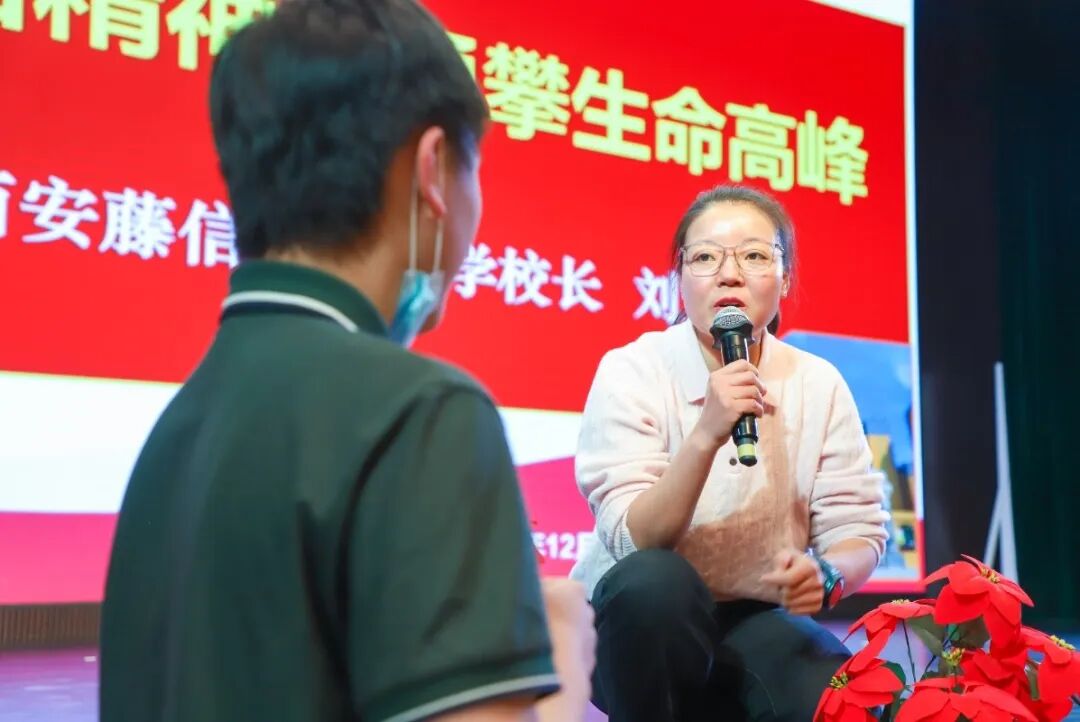 活动最后,刘卫校长分享了聆听何静女士事迹后的深切感触,对这位在珠峰之巅唱响《歌唱祖国》的英雄满怀自豪与敬佩。他寄语全体藤信学子,每个人都有专属的“人生山峰”,既要正视学习路上的困难、珍惜同行伙伴,更要学会团队协作;同时明晰“顶峰”的真谛在于为世界创造价值。刘校长鼓励同学们从当下做起,以认真求学、坚持拼搏的姿态勇攀高峰,践行“世界因我更美好”的愿景,朝着“民族脊梁,世界精英”的育人目标奋力前行。