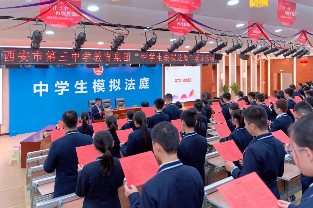 推进依法治国,弘扬法治精神。值此第十二个国家宪法日,西安市第三中学以 “宪法宣传周” 为契机,开展宪法晨读、国旗下演讲、主题手抄报展评、中学生模拟法庭等系列教育活动,让宪法信仰根植校园沃土,让法治精神浸润青春心灵,在全校营造了 “学宪法、讲宪法、守宪法” 的浓厚氛围。