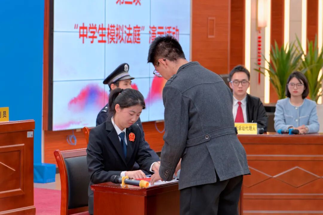 鲜活的模拟法庭演示活动,把生硬刻板的法律条文转换成生动的现场模拟,以沉浸式教育创新了校园法治宣传教育的形式。