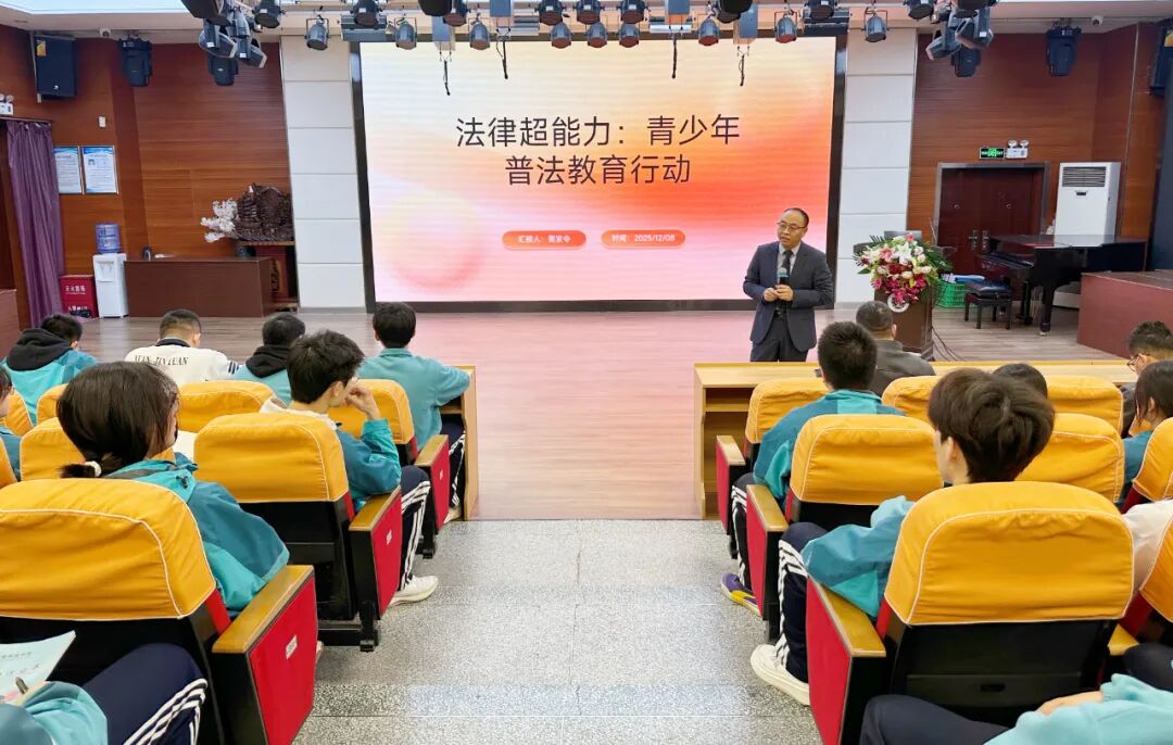 学校邀请陕西众致律师事务所青年律师贾发令来校开展专题讲座,围绕未成年人保护、防范校园欺凌等热点问题以案释法,引导学生学会用法律武器保护自己。