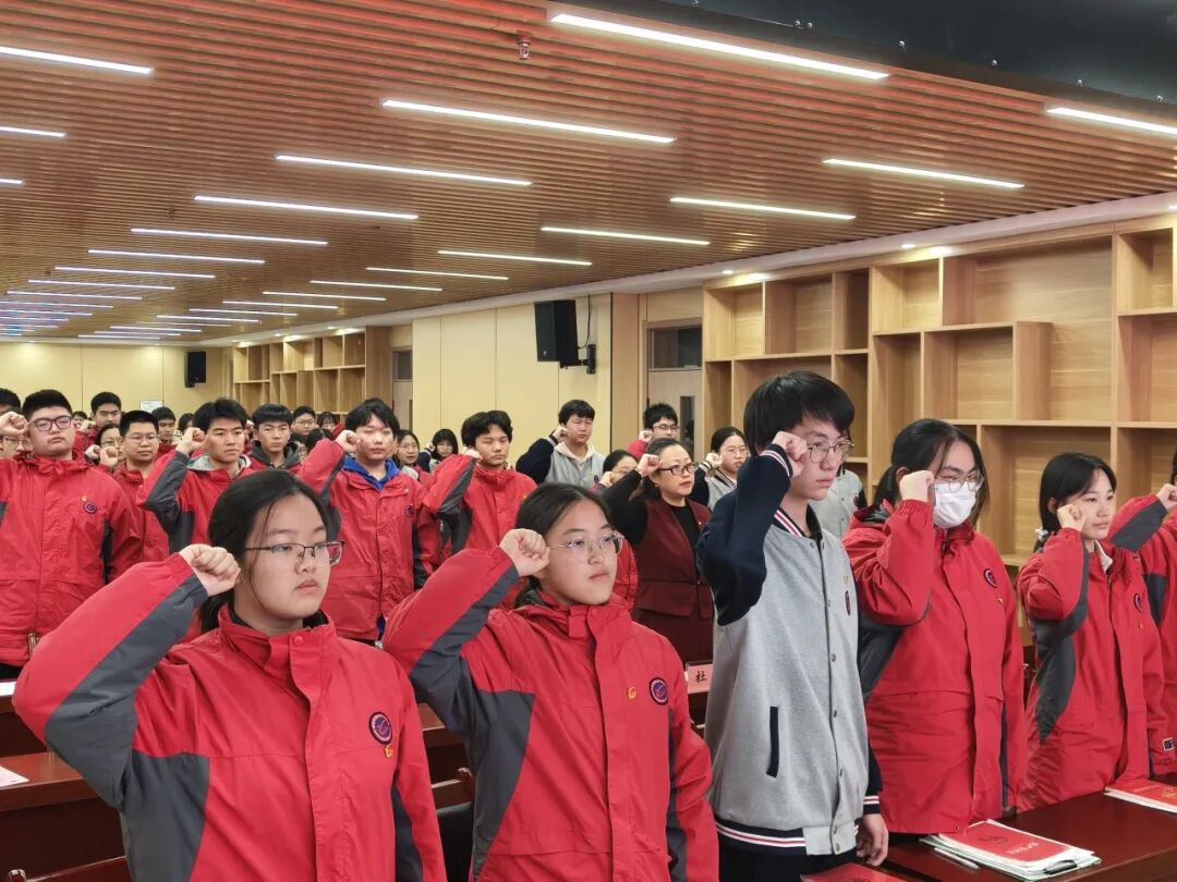 12月8日下午,太乙分校六层会议室团旗飘扬、气氛庄重,高二年级主题团日活动在《光荣啊,中国共青团》的嘹亮歌声中拉开帷幕。