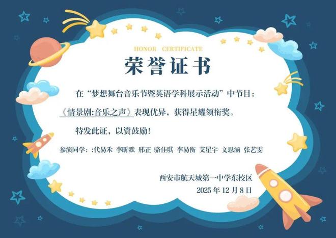 当星河坠入人间,当青春碰撞热爱,当英语与艺术携手绽放——“航一少年 星耀未来”七年级梦想舞台音乐会暨英语学科节展示活动,在万众期待中璀璨启幕,用一场视听盛宴,定格了少年们最耀眼的模样。