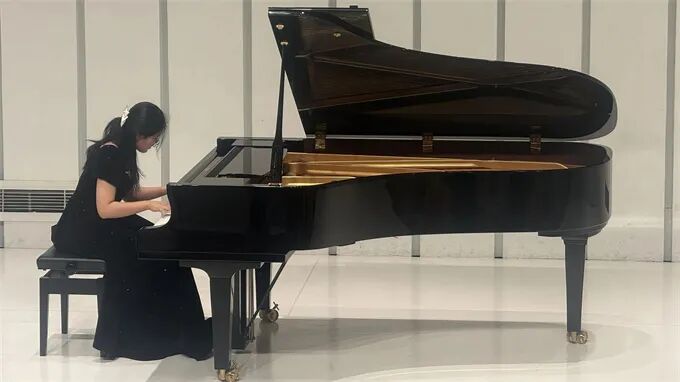 期间还演奏了多首西方古典钢琴名曲。有拉赫玛尼诺夫的《g小调前奏曲》、肖邦的《“激流”练习曲》以及李斯特的《帕格尼尼大练习曲》等经典作品,展现出崇美书院音乐特长生扎实、全面的专业素养与技艺,也让中西文化在音乐语汇中进行对话与融合。
