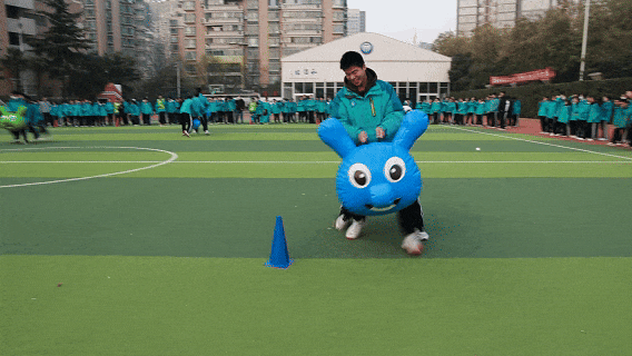 为缓解九年级学子学习压力,本次体育节专为其设置趣味运动会,实心球接力跑、毛毛虫接力两项赛事精彩上演,让同学们在欢乐中感受运动魅力。场边观众热情高涨,为选手加油鼓劲,赛事既提升了学生身体素质,也加深了队员间的默契配合。毛毛虫接力赛需队员步调一致、协同发力。比赛时,队员们骑在充气毛毛虫上,齐声喊口号,同步向前推进。各队伍或快速领先,或稳步追赶,赛场上的欢声笑语缓解了备考紧张感,既锻炼了身体素质,更培养了互助合作精神,为紧张的毕业班生活注入活力。