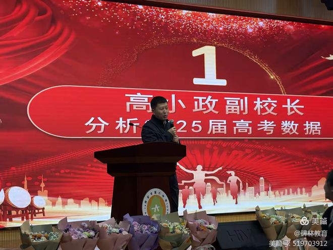 会议伊始,高小政副校长以“数据为基、精准复盘”为核心,全面分析2025届高考各项数据:从总分分段分布、学科均分对比,到尖子生培养成效、临界生提升幅度,通过横向对标同类学校、纵向梳理备考各阶段指标,清晰呈现本届高考的优势与可优化空间,为后续备考明确了“靶向提升”的方向。