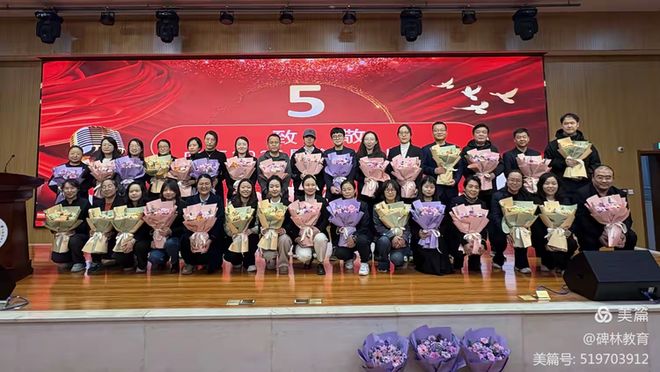 温情与传承交织,是本次会议的鲜明底色。在献花致敬2025届高三教师环节,与会领导为高三教师代表献上鲜花,感谢他们以匠心育桃李、以坚守赴山海的辛勤付出。