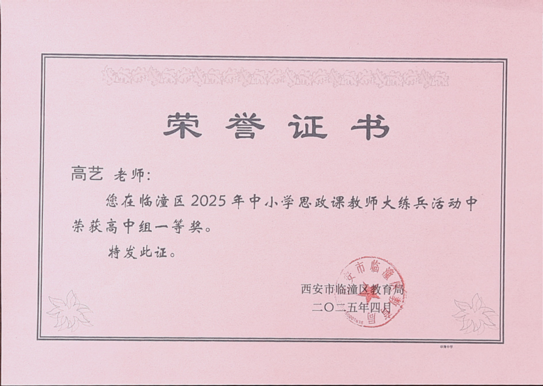 一份荣誉,彰显育人担当,高艺老师的优异成绩,为全校教师树立了可学可鉴的标杆典范。未来,华清中学将以此为契机,锚定立德树人根本任务,持续深化思政课程改革创新。学校将聚力打造一支政治立场坚定、育人情怀深厚、教学理念新颖的高素质思政教师队伍,推动思政课堂守正创新、提质增效,真正让思政课堂成为启迪思想、铸魂育人的核心主阵地。
