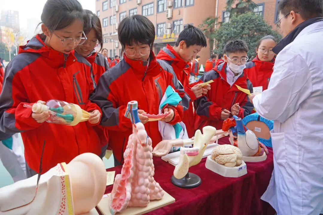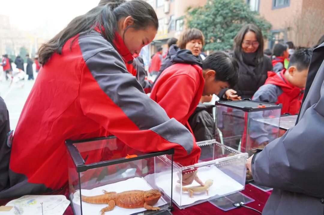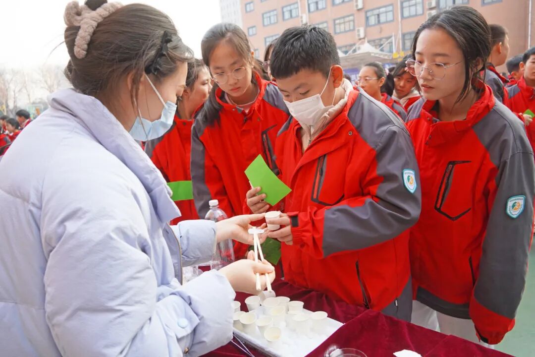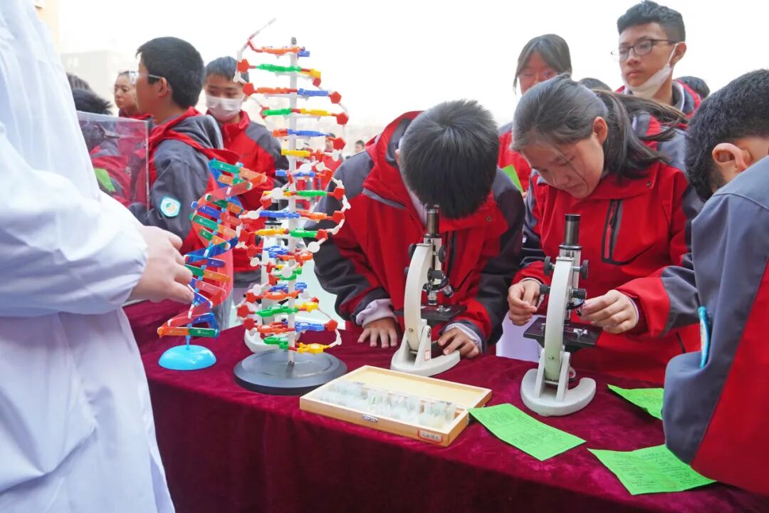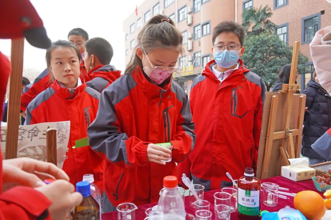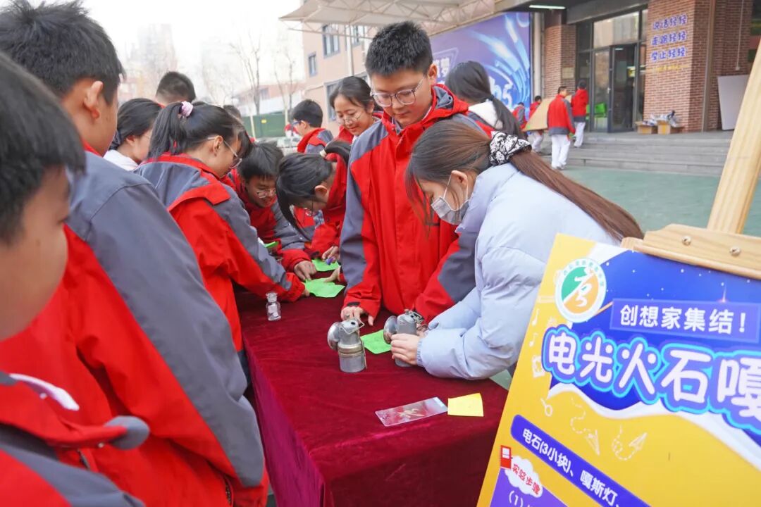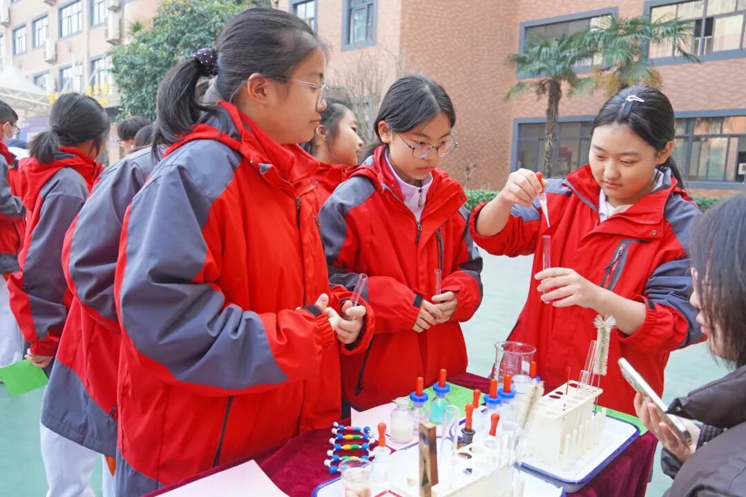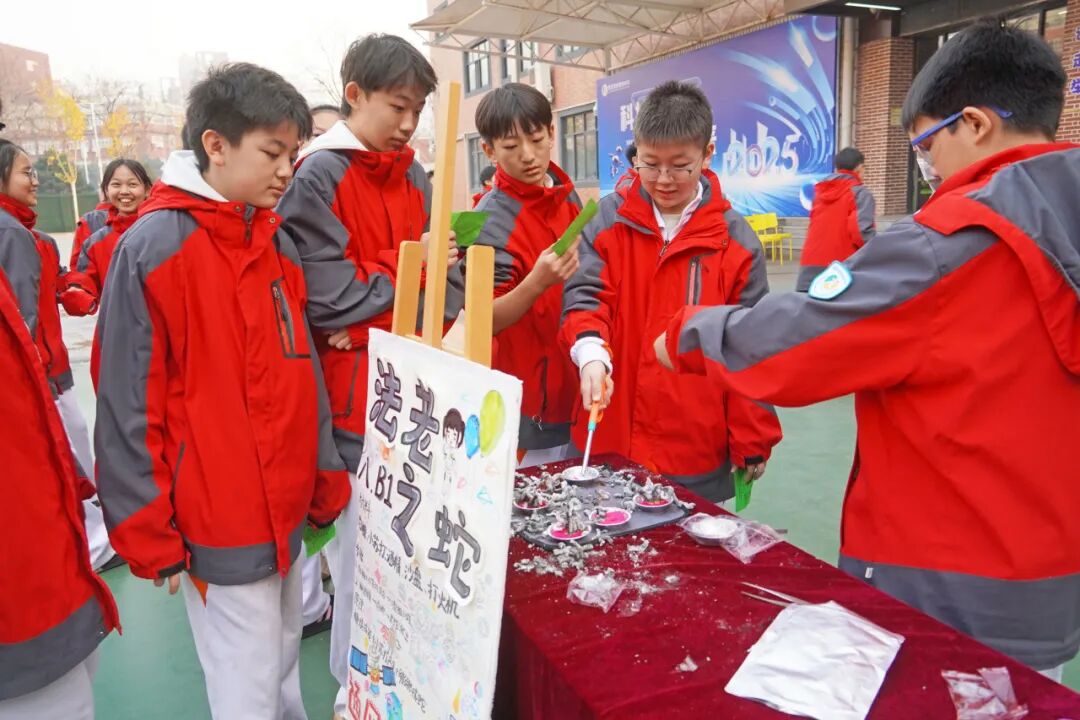 展演过后,科学游园会启幕。涉及物理、化学、生物、地理等领域的22个科技体验项目,在操场上整齐摆开,同学们手持通关卡,来到一个个展台前,或认真聆听老师的讲解,或亲自动手操作实验器材,感受着科技带来的无限乐趣,积极赢取“科技小达人”荣誉!