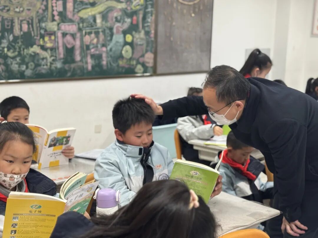 晨读时分,小学部负责人杨胜文老师穿梭于课桌前,关怀并倾听学生的心声
