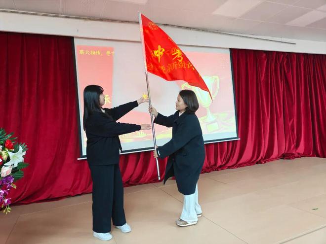 辉煌属于过去,奋斗成就未来。在传承交接的仪式上,初2026届年级组长李博维接过承载着期望与责任的旗帜,代表新一届初三团队表达了继承优良传统、勇于开拓创新、争取再创辉煌的决心与信心。铮铮誓言,展现了中铁教育人薪火相传、永不止步的精神风貌。