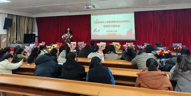 行政副校长贾平利对学校绩效工资考核办法进行解读,并围绕师德师风建设带领与会教师共同学习《西安市中小学教师职业行为守则》,对教师职业规范和工作纪律提出明确要求,引导全体教师进一步筑牢思想根基、严守职业规范、明确师德底线,以自觉行动持续营造风清气正、潜心育人的良好教育生态。