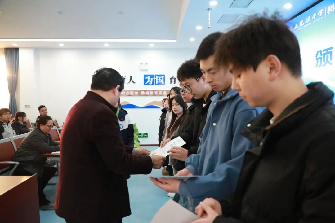 在庄重的聘书颁发环节,校长王琪、德育副校长王强、校长助理高建伟分别为三批优秀学生辅导员颁发聘书,每一份聘书都承载着学校的信任与对科学教育发展的期许。
