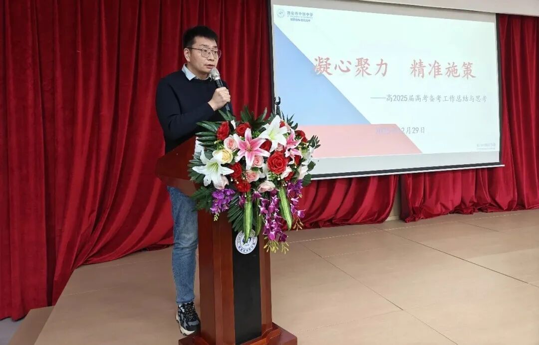 高2025届年级组长王宇超老师以《凝心聚力,精准施策》为题,系统回顾了三年来年级组在教学管理、学生管理、教师团队建设等方面的实践路径,介绍了团队协作、奋战高考的宝贵经验,并勉励全体高中教师从点滴做起,一丝不苟、扎实教学、再创佳绩!