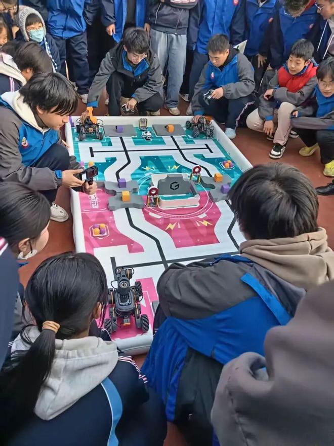 无人机率先升空。障碍杆间,四旋翼呼啸穿梭;定点悬停,机身稳若磐石。每一次俯冲与拉升,都把“空气动力学”写进蓝天。紧随其后的机器人编程赛同样吸睛,学生通过自主编程让机器人精准完成各项指令。掌声、尖叫声此起彼伏,同学们在速度与精准中第一次真切感到“代码”与“齿轮”的温度。
