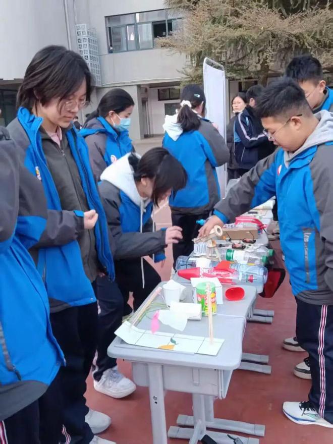 压轴的二级水火箭把气氛推向顶点。塑料瓶注水后加压,倒计时3、2、1——“嘭!”水柱与气体反冲,火箭直冲三十米高空,抛物线顶端划过一片惊呼。另一侧的科技小制作集市同样火热:皮影戏、土电话、自制望远镜、潜望镜、单排乐器、浮力轮船……同学们边体验边讨论,摊位前排起长龙。亲手拧一颗螺丝、调一次焦距,知识便从指尖钻进心里。