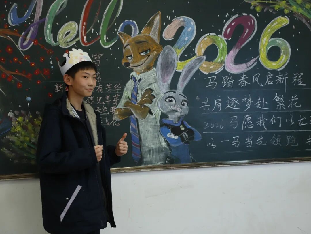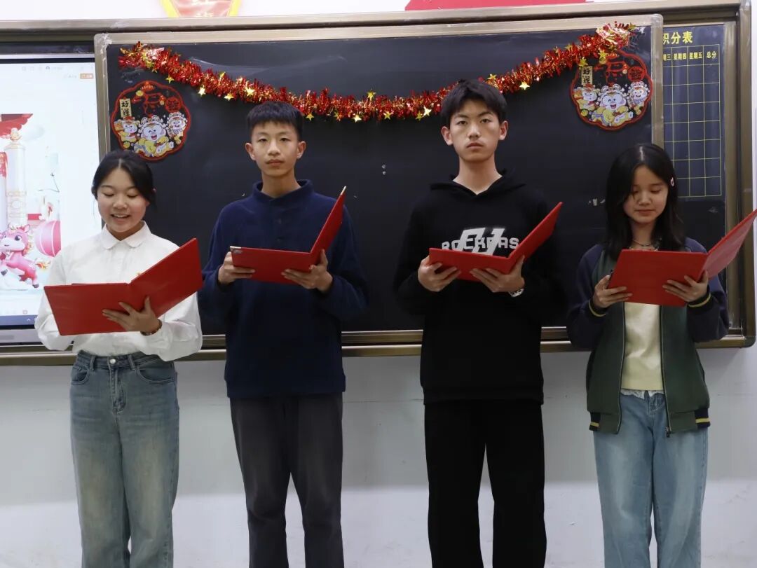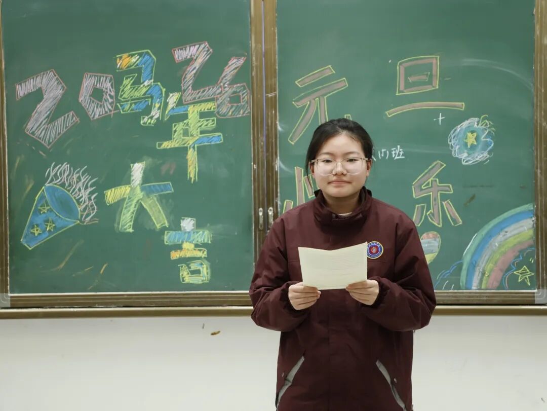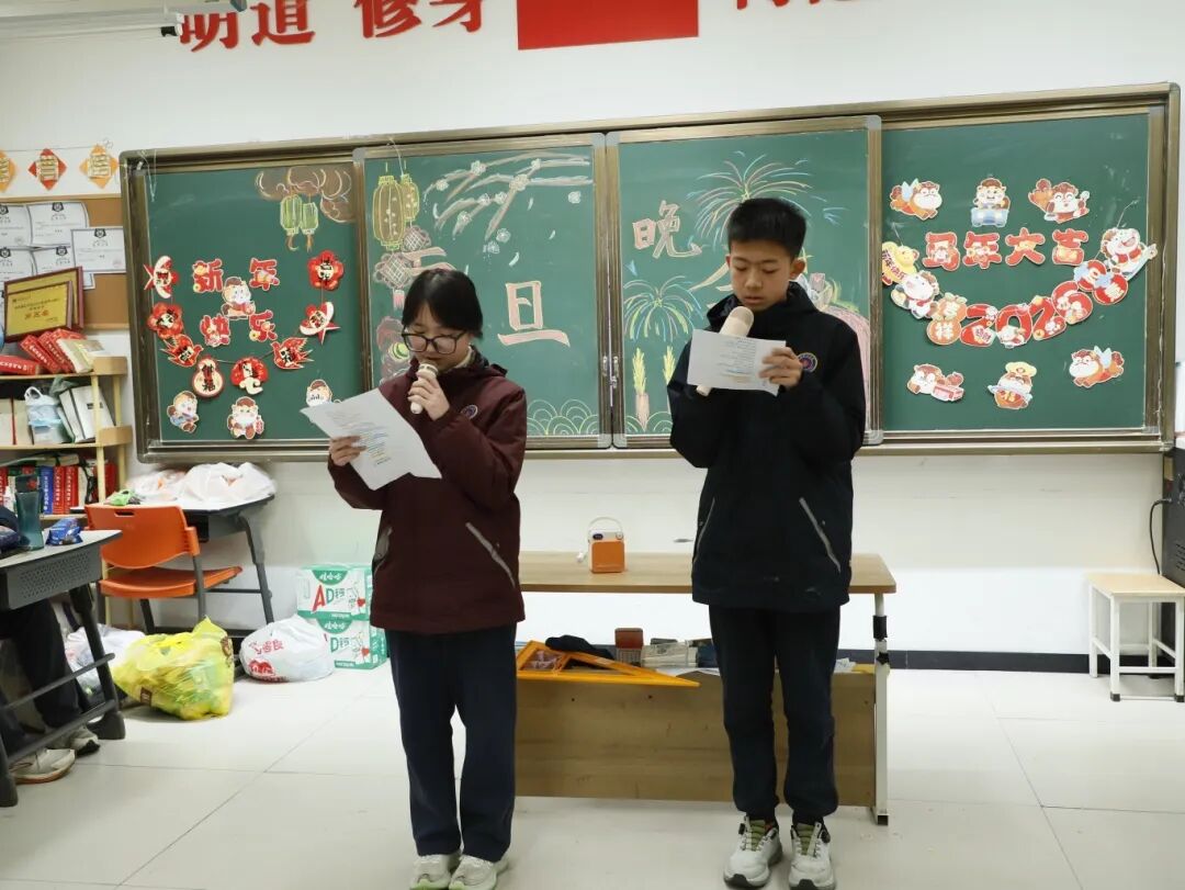 各班师生提前精心筹备、分工协作,创意巧思尽显其中。黑板报或灵动飘逸或庄重典雅,字里行间满是对新年的憧憬与祝福;带有节日氛围的布置,让教室变身温馨的天地;同学们将课桌有序环绕,搭建成独具班级特色的迷你舞台,桌上的零食、水果为晚会增添了浓浓的烟火气与幸福感。