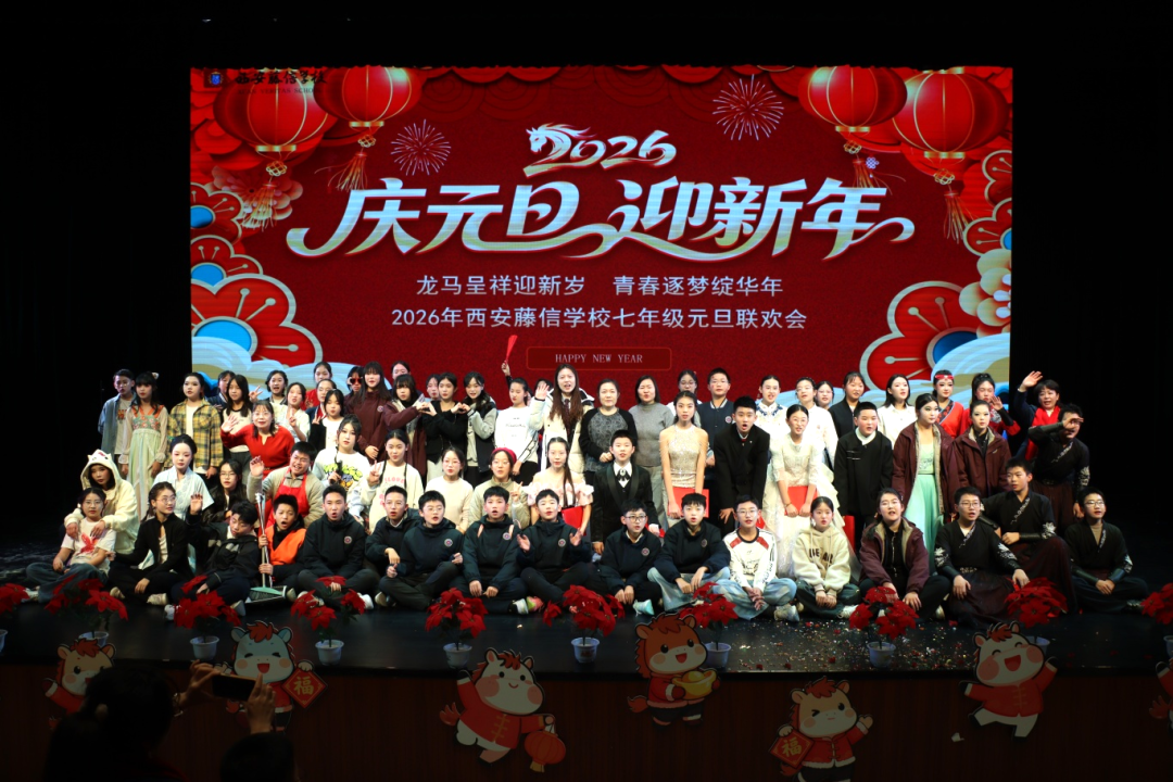 岁聿云暮,一元复始。12月31日,西安藤信学校活动中心和教室里欢声笑语,热闹非凡。西安藤信学校初中部2026年元旦大联欢如期而至。师生们欢聚一堂,用青春的热情点燃冬日的温暖,用嘹亮的歌声唱响时代的旋律,用灵动的舞姿诠释梦想的华章。