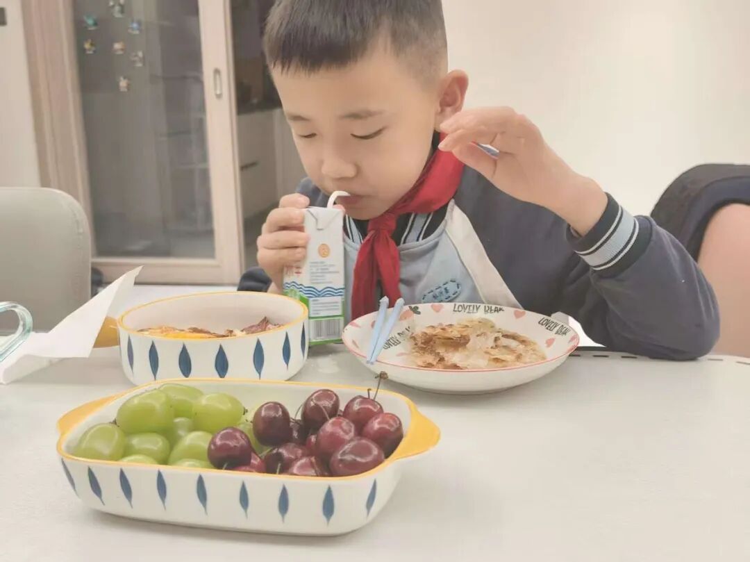 大口吃掉父母准备的早餐