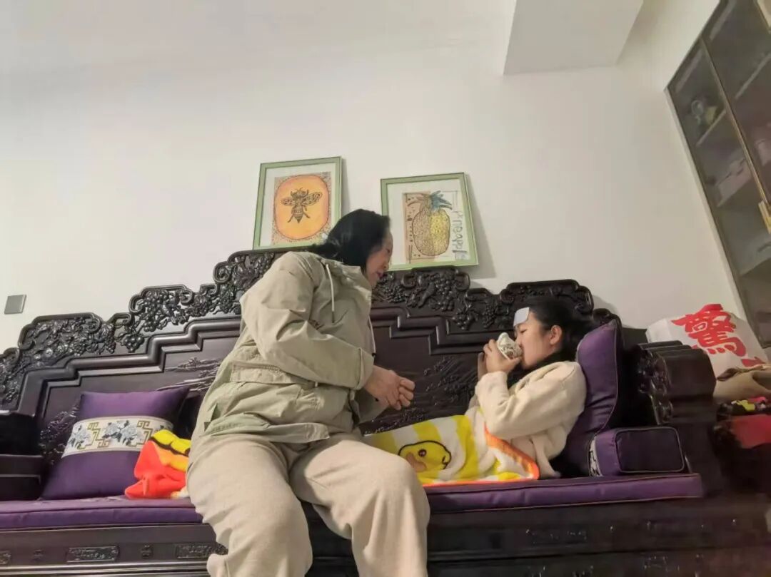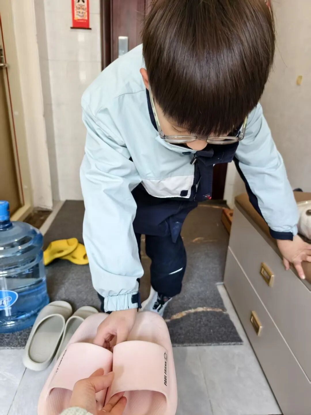 为父母递双拖鞋