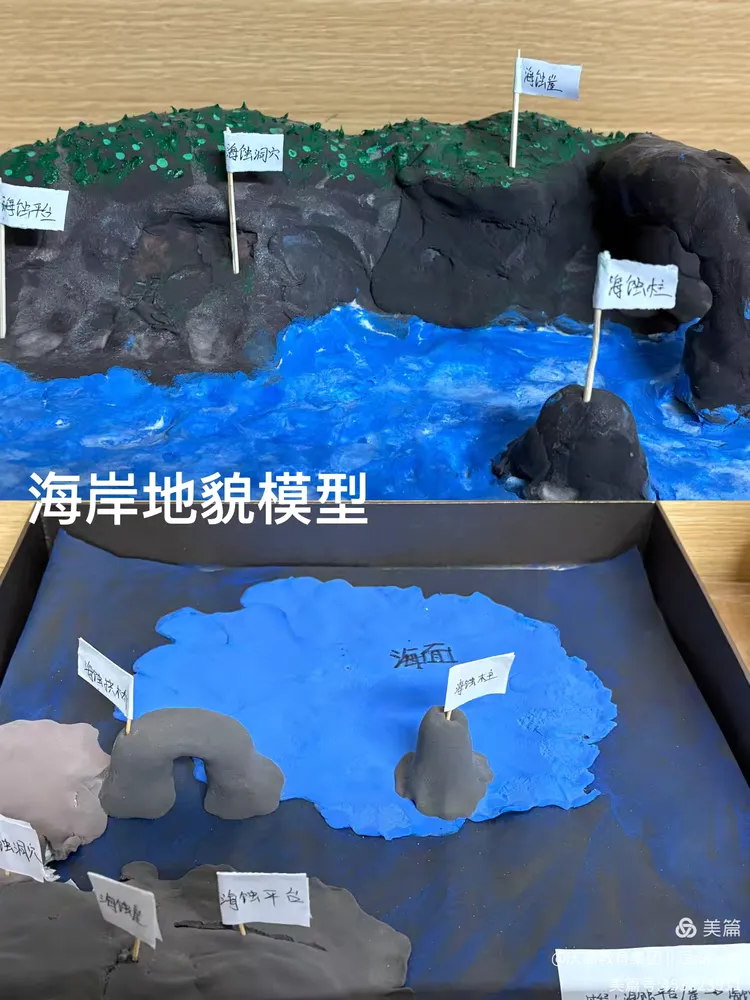 同学们以创意为笔,以实践为墨,让知识在手中成型——泡沫塑其形,黏土堆其质,废料赋其神。课本中“地表形态的塑造”“地球的宇宙环境”等主题,由此转化为生动可触的地理模型。从文本到立体,是知识的跃迁;从独行到合作,是成长的篇章。每一件独具匠心的作品,都是志为学子对广袤空间与自然伟力的深刻思考。