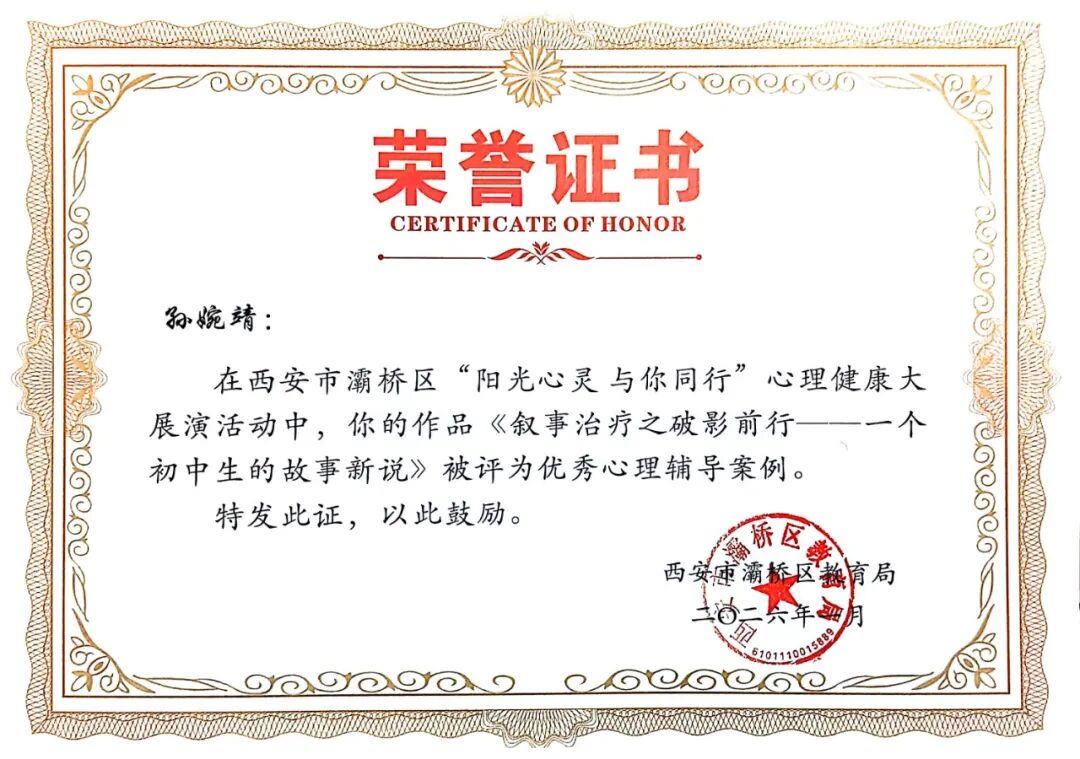孙婉靖老师通过叙事治疗技术,帮助一位初中生通过深情讲述自己的生命故事,从中找到内在力量与成长方向。这一案例充分体现了西安市五环中学心理教师的专业素养与育人温度。